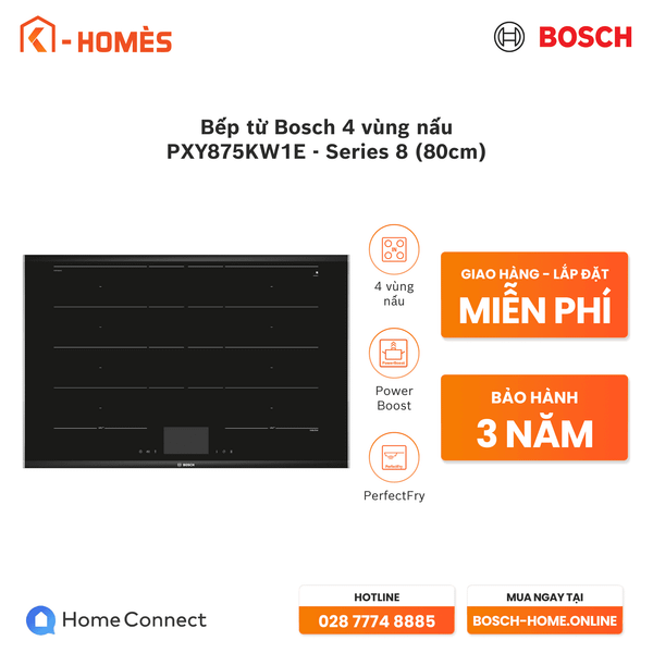| Tên sản phẩm | Bếp từ Bosch 4 vùng nấu PXY875KW1E - Series 8 (80cm) |