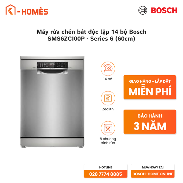Máy rửa chén bát độc lập 14 bộ Bosch SMS6ZCI02P - Series 6 (60cm)