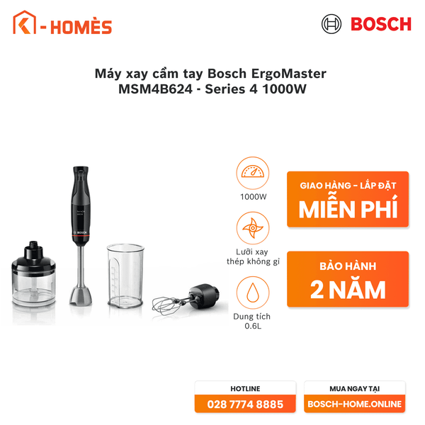 Máy xay cầm tay Bosch ErgoMaster MSM4B624 - Series 4 1000W